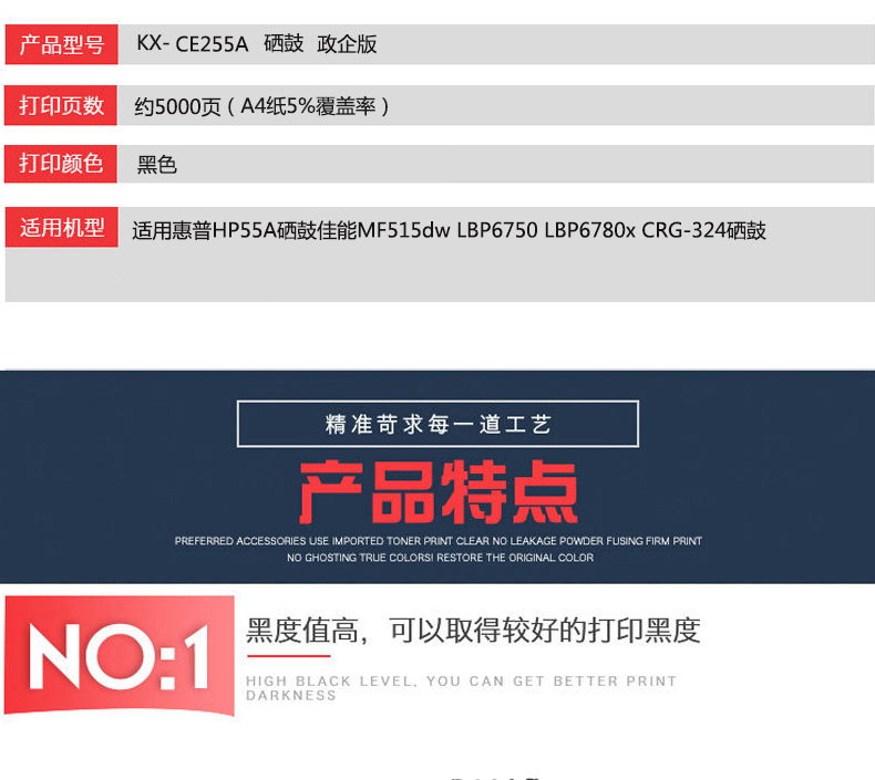 凱欣KX-CE255A 適用惠普HP55A硒鼓佳能MF515dw LBP6750 LBP6780x CRG-324硒鼓 全國統(tǒng)一價:236元